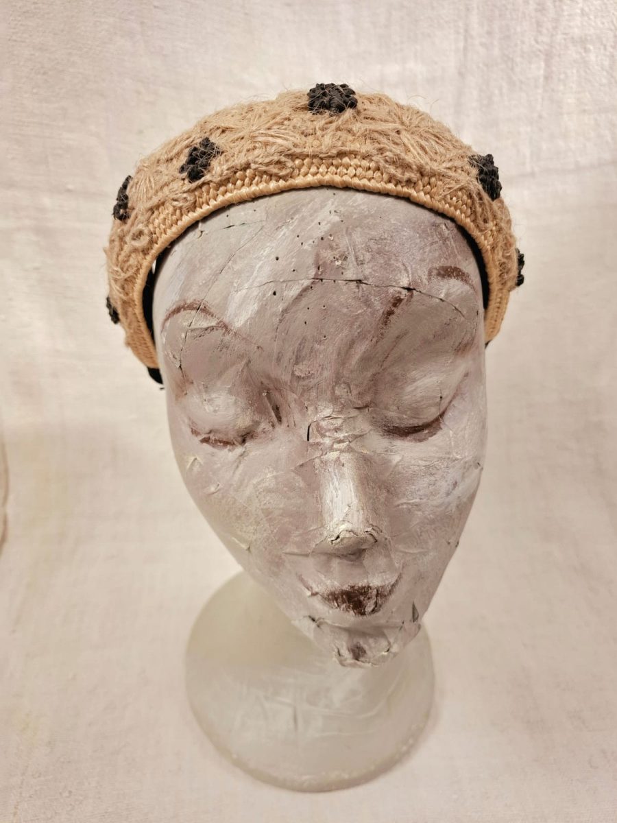 Diadema de color natural. Customizada con bordado de lino.